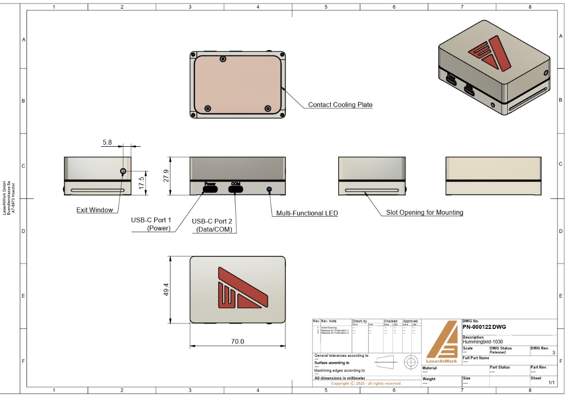 Hummingbird sets new standards with respect to performance, compactness and price. It is powered by 20V (USB-C PD) and features a contact-cooled, miniature housing that integrates everything you need to operate the laser oscillator 24/7. With its output power of >1W, its pulse duration of <200 fs at a repetition rate of 50 MHz, it is the perfect workhorse for your everyday laser tasks!